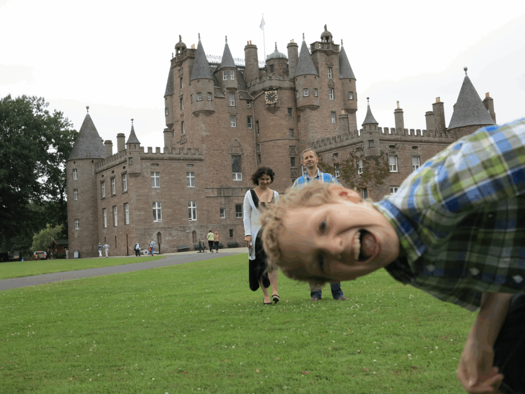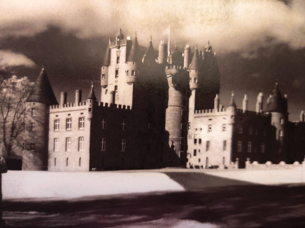 Zamek Glamis w Szkocji – to ten zamek stał się inspiracją dla Williama Sheakspear’a do umieszczenia akcji „Macbeth’a” w tym właśnie miejscu. Kiedyś zwiedzałam ten zamek i pozostało mi w albumie to rodzinne zdjęcie – Marzanna Leszczyńska