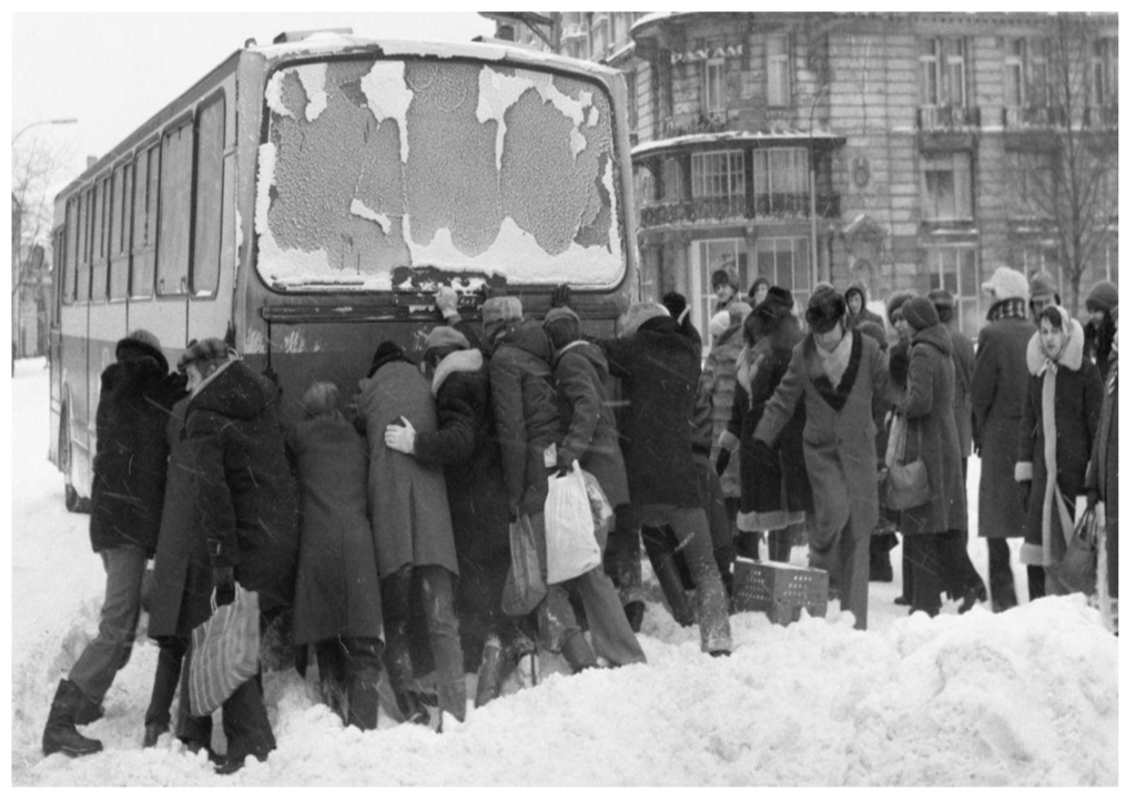 Na przełomie lat 1978/79 roku miała miejsce w Polsce zima stulecia, którą pamiętam. Kilkunastostopniowe mrozy i potężne zaspy sparaliżowały wówczas życie całego kraju. W niektórych rejonach Polski wprowadzono nawet stan klęski żywiołowej, a do akcji wkroczyły zastępy wojska. W tym czasie wiele osób nie mogło dotrzeć do pracy, zaś dzieci przestały chodzić do szkoły na długie tygodnie. . Przestały kursować PKS-y, wiele linii PKP nie kursowało przez tygodnie – zaś obywatele ruszyli z łopatami na drogi i chodniki, by je odśnieżać. Do ośnieżania użyto też czołgów, których gąsienice zrywały z dróg grubą warstwę zbitego i zmrożonego śniegu. W wyniku siarczystego mrozu zaczęły pękać szyny kolejowe, co spowodowało poważne zakłócenia w dostawie węgla do elektrociepłowni. Ten stan rzeczy trwał do marca 1979 roku, a więc do pojawienia się dodatnich temperatur. Tą zimę pamiętam dokładnie – miałem wtedy jeszcze 19 lat – pamiętam jak ruszyłem z Poznania do Warszawy ekspresem – pociągiem – chyba on się nazywał „Lech” wsiadłem o 6.00 do pociągu – 30 grudnia 1978 roku, aby dojechać do Warszawy na bal sylwestrowy ( za dużo powiedziane – tzw. prywatkę), na który byłem zaproszony – dojechałem… 2 stycznia 1979 roku. Chwała Bogu, że zaopatrzyłem się w kanapki i picie ( niestety Szampan…) . Ale taka jaka była impreza sylwestrowa w tym pociągu – tego nie zapomnę nigdy – wszyscy wiedzieli , że nie dojadą do Warszawy na czas – nikt się nami nie interesował – staliśmy gdzieś pod Kutnem. I wtedy ( praktycznie drugi dzień – 31 grudnia – godzina 21.00) wszyscy pasażerowie wyjęli swoje prowianty i alkohole – impreza nieziemska – Pamiętam, że ktoś miał radio tranzystorowe i coś tam grało , potem ktoś zaczął grać na gitarze. Zabawa była przednia – młodzi i starzy. Było fajnie – mimo, że było upiornie zimno, ciemno – ale była więź między ludźmi…