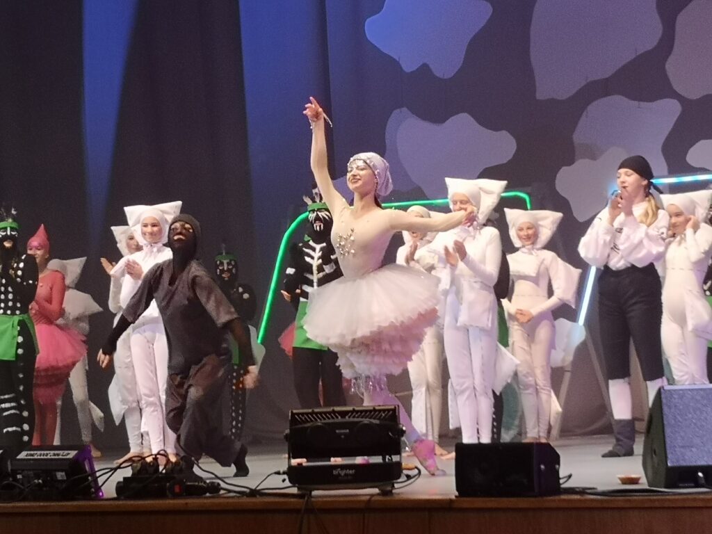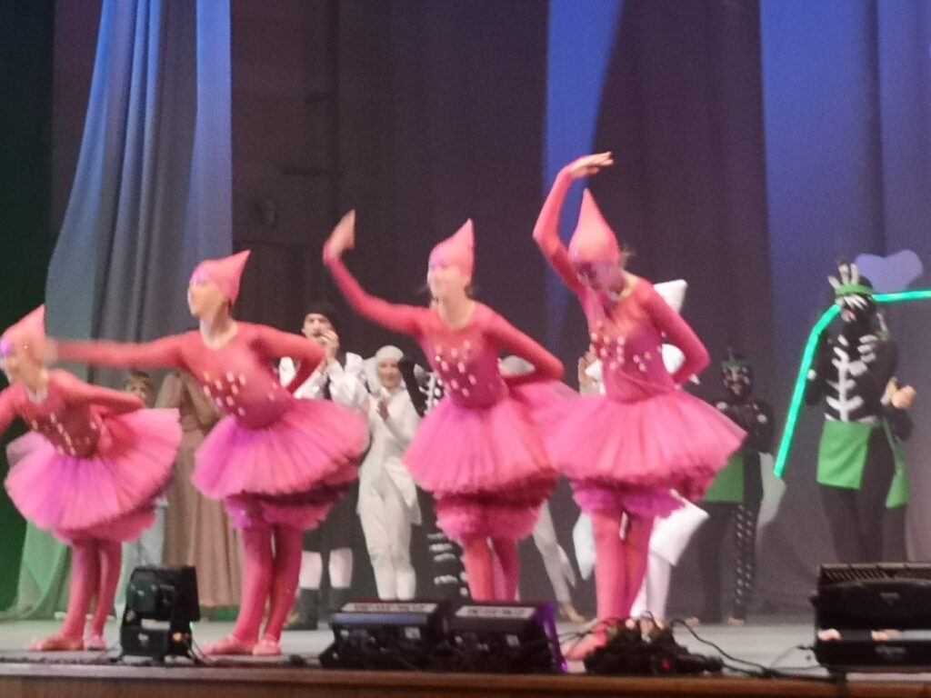 Koncert odniósł sukces, bo sala wypełniona była po brzegi – piosenki z bajek Walta Disneya, piękny śpiew solistki panny Melodianny i solisty Rytmisława Stuk – Puk, dzieci zaangażowano ruchowo, pośpiewały nawet, a koncert miał wychowawcze przesłanie – zachęcał do realizacji dziecięcych artystycznych marzeń, podbijał ambicję, mówił o tym , że trema i nieśmiałość to naturalna sprawa i trzeba nad tym pracować, a nie uciekać z aktywności z tych powodów. Stroje solistów kolorowe, bajeczne – chociaż pomysł na strój Melodianny już widziałam u Dzwoneczka z „Piotrusia Pana” tylko, że tam był różowy, tutaj solistki ubrano w czerwony falbaniasty dół i pasiate bluzeczki. Na dowód przypominam zdjęcia z Koncertu pt: „Piotruś Pan” (grudzień roku 2022).