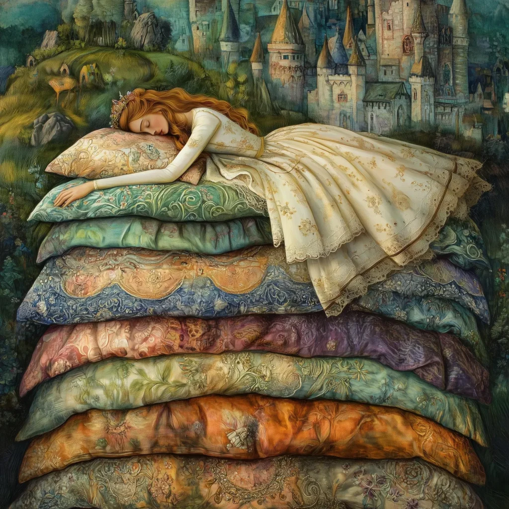 rys. Marcina Szancera do bajki J. Ch. Andersena ” Księżniczka na ziarnku grochu”